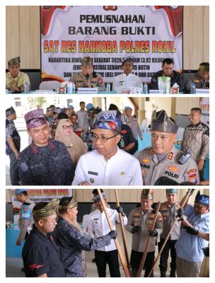 Polres Rokan Hilir Musnahkan Hampir 4 Kg Sabu, Ribuan Ekstasi dan Happy Five